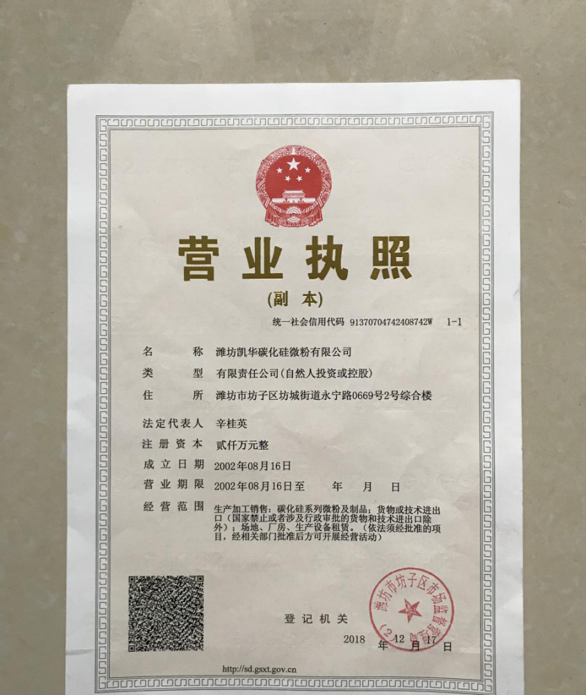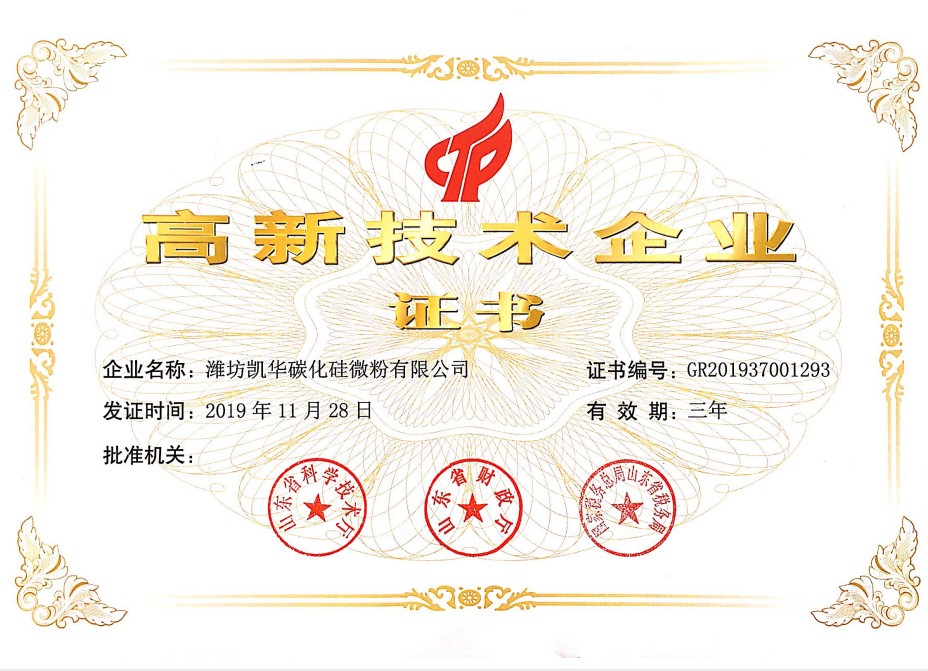 濰坊凱華碳化硅微粉有限公司成立于2002年,國(guó)家高新技術(shù)企業(yè),公司占地40畝,標(biāo)準(zhǔn)廠(chǎng)房19000平方,辦公樓、研發(fā)處2000平方,年生產(chǎn)能力3萬(wàn)噸。一直從事陶瓷級(jí)微粉的生產(chǎn)銷(xiāo)售,所生產(chǎn)的超細(xì)碳化硅微粉具有純度高、粒形好、穩(wěn)定性強(qiáng)等特點(diǎn),主要用于反應(yīng)燒結(jié)、無(wú)壓燒結(jié)、硅碳棒新工藝、重結(jié)晶燒結(jié)、蜂窩陶瓷、機(jī)車(chē)制動(dòng)裝置、研磨拋光、金屬防腐表面噴涂、納米隔熱保溫材料等領(lǐng)域。標(biāo)準(zhǔn)產(chǎn)品有:F240、F1200、W40、W28、W20、W14、W10、W7、W5、W3.5、 W2.5、W2、W1.5、W0.5、5S、D3E、100F、RS07、RS100及整形高密度系列綠碳化硅微粉......